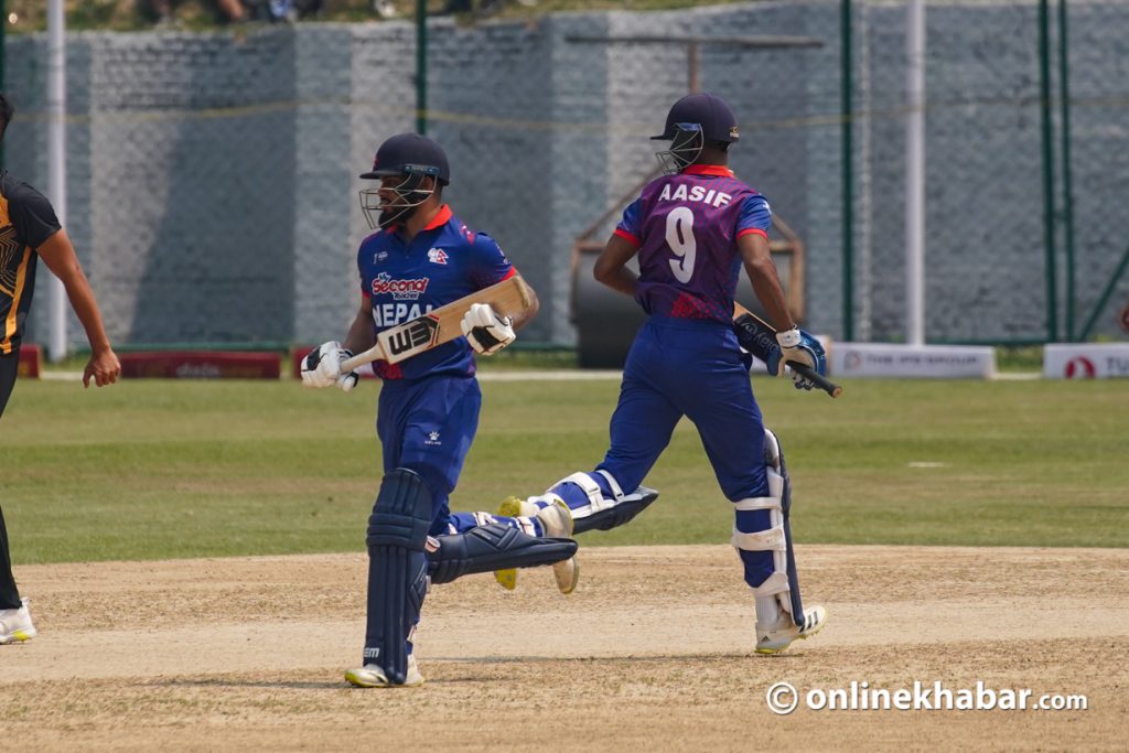 उनीहरोक कीर्तिमानी साझेदारीसँगै २६ ओभरको खेल सकिँदा नेपालले विना क्षती १२५ रन बनाएको छ ।