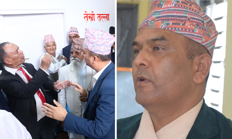 संसदीय सुनुवाइ समितिको बैठकबाहिर उजुरीकर्ताहरु र न्यायाधीश श्रीकृष्ण भट्टराई ।